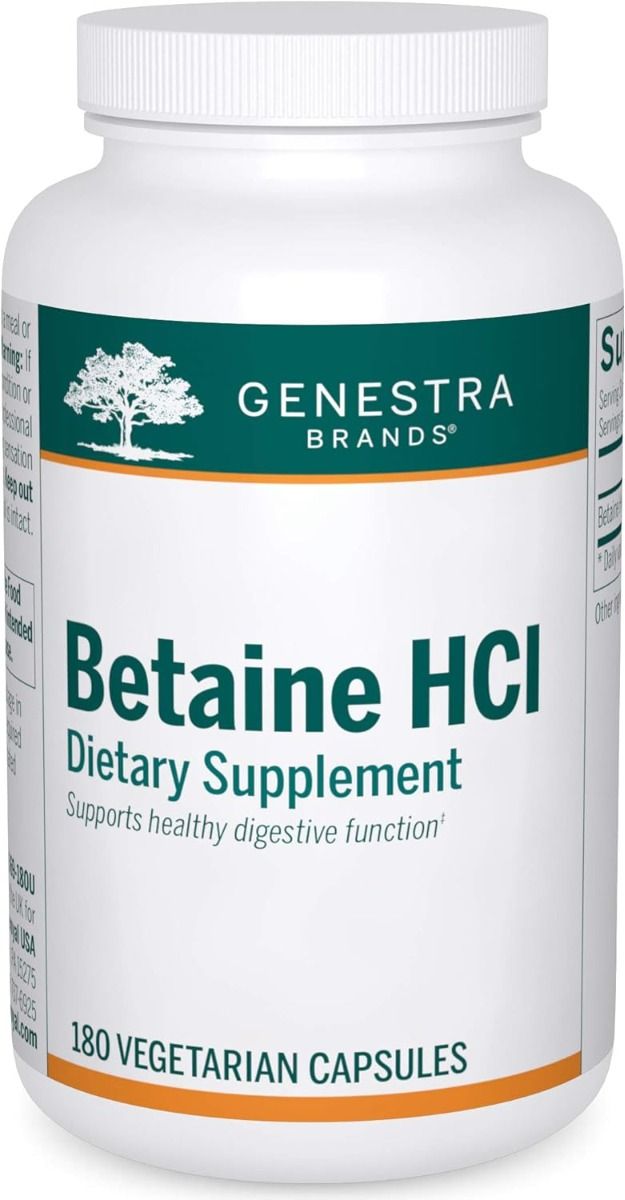 Betaine HCl includes 1500 mg of betaine hydrochloride per serving, to help