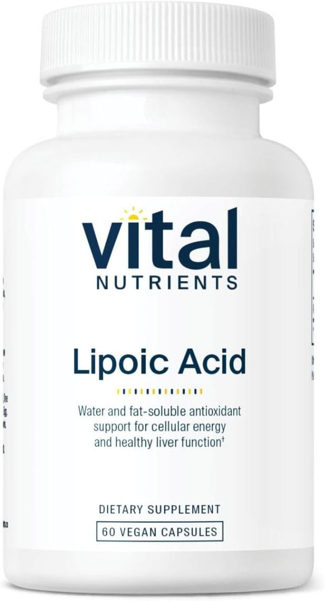 LIPOIC ACID helps to produce energy in muscles, and maintains blood sugar levels that are already within the normal range. It is a necessary component of the glucose-pyruvate-ATP pathway, creating energy production from calories. It is a powerful antioxidant and plays an important role in supporting healthy vision and nerve function. Lipoic acid is a potent liver detoxification supporter and protector.