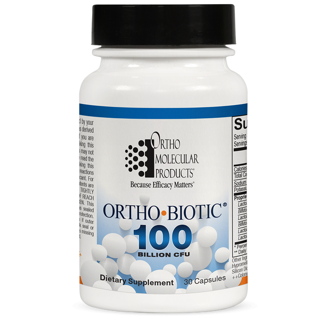Going beyond the threshold of traditional probiotic support, high-dose probiotics influence GI health and immunity in ways lower-dose probiotics cannot. Shown to activate over 1,700 genes involved in immune and inflammatory signaling, high-dose probiotics improve immune function, strengthen the gut-immune barrier, and promote inflammatory balance. Each Ortho Biotic 100 capsule provides six proven probiotic strains chosen for their ability to survive the harsh GI environment to deliver superior results.