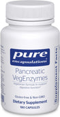 Pancreatic VegEnzymes Vegetarian pancreatic enzyme alternative *This enzyme blend provides a broad acting formulation derived from the plant sources Aspergillus oryzae and Aspergillus niger. It is a vegetarian alternative to Pancreatic Enzyme Formula for carbohydrate, lipid and protein digestion. These enzymes have several unique properties that enhance their ability to promote the optimal breakdown of foods and nutrients, including broad substrate specificity. This means that these enzymes have the ability to recognize and help digest a large number of target molecules. Plant enzymes are also active in a wide pH range, from about 3.5-8.5, indicating that their actions begin in the stomach and continue in the small intestine, promoting complete digestion. Pure Encapsulations Pancreatic VegEnzymes is comparable in amylase, protease and lipase profile to Pancreatic Enzyme Formula. Each 200 mg capsule of Pancreatic VegEnzymes provides the equivalent of one 500 mg capsule of Pure Encapsulations Pancreatic Enzyme Formula.