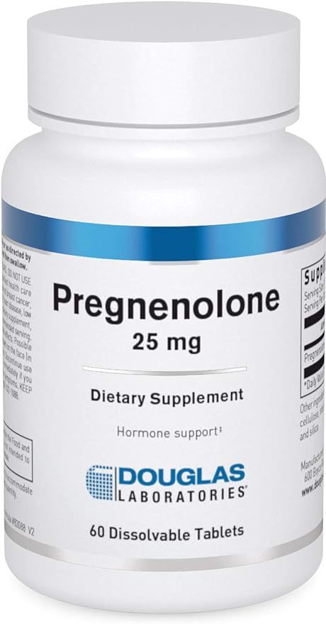 Scored, sublingual tablet containing 25 mg of Pregnenolone for hormonal support.