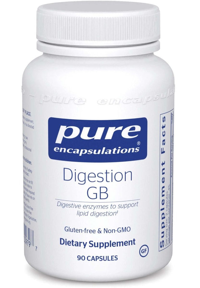 Digestion GB contains digestive enzymes, bile salts, taurine and herbal extracts to promote healthy gall bladder function and fat utilization. The metabolism of fats involves emulsification and digestion in a complex process that requires healthy liver, gallbladder and pancreas function. Milk thistle, curcumin and taurine promote liver and gallbladder health and stimulate production and secretion of bile acids. Bile acids, also provided in the form of ox bile salts, support the emulsification of fats necessary for digestion. The digestive enzymes included in this formula are active in a broad pH range to support fat, carbohydrate and protein digestion to complement pancreatic enzyme activity. This formula has enhanced lipase for extra fat digestion support.