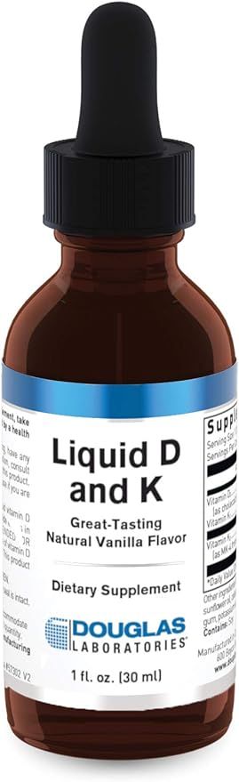 Liquid D and K, provided by Douglas Laboratories is a unique, great tasting liquid supplying significant amounts of vitamins K1 and K2 as well as vitamin D3 to support optimal bone health.