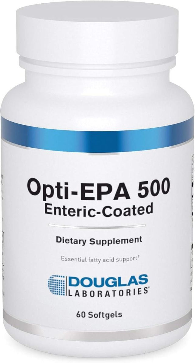 Douglas Laboratories’ Opti-EPA™ 500 is concentrated marine fish oil, providing enriched levels of eicosapentaenoic acid (EPA, 300 mg) and docosahexaenoic acid (DHA, 200 mg).