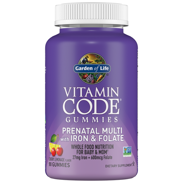 It’s a wonderful and exciting time in your life and you know the importance of getting the right nutrients for you and your baby. You want a prenatal multivitamin gummy that’s got all the good stuff you want and is downright delicious! Formulated with mom and baby in mind, Vitamin Code Prenatal Multi Gummies with Iron & Folate are a blend of whole food fermented vitamins and minerals, plus 27mg of gentle iron, 600mcg of folate, and clinically studied probiotics, Bacillus subtilis DE111®. These yummy gummies support healthy neural tube development and blood and reproductive system health, plus they have vitamin D3 for optimal dietary calcium absorption. These tasty and stomach-friendly cherry lemonade-flavored gummies are Non-GMO Project Verified and NSF Certified Gluten Free, making them clean nutrition for mom's and baby’s bodies.