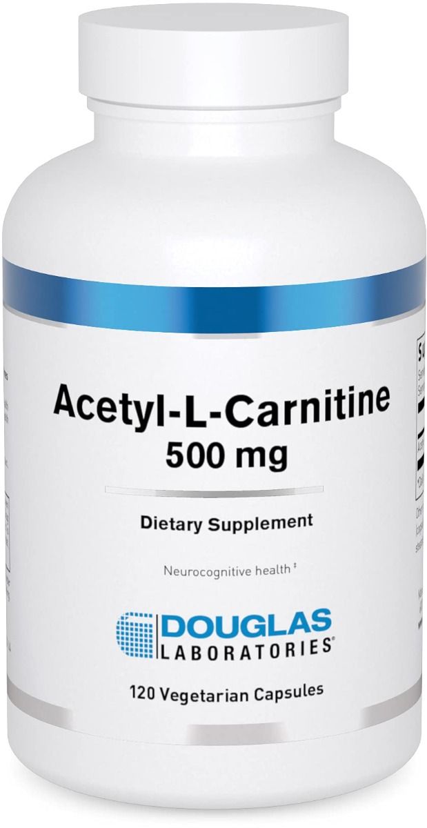 Acetyl-L-carnitine capsules, provided by Douglas Laboratories, each contain 500 mg of pure acetyl-L-carnitine.