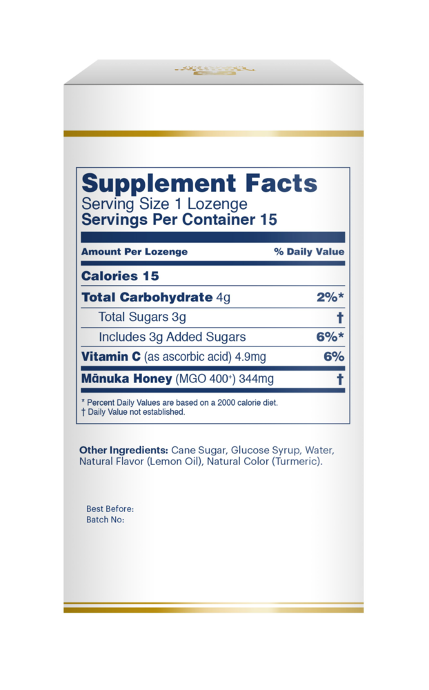 Given by nature, backed by science. These delicious lozenges combine the goodness of premium New Zealand Manuka Honey with the fresh natural taste of lemon and an extra boost of vitamin C.