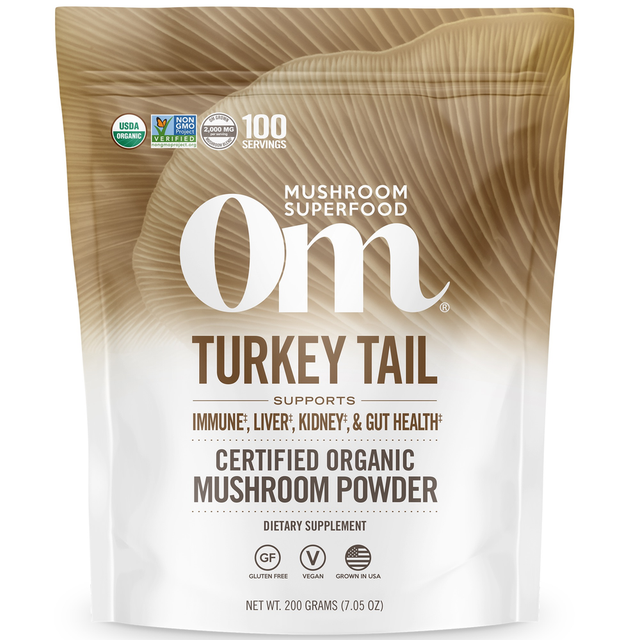 Holistic defense. Immune support. Elevate your wellness with one of the most researched of all medicinal mushrooms known for its powerful polysaccharides (immunity activators). The beta glucans and other nutrients found in Turkey Tail support immune health. Om Turkey Tail provides Organic Whole-Food Support: • Tremendous research related to enhancing immune system* • One of the most researched of all medicinal mushrooms • Powerful immunite support*