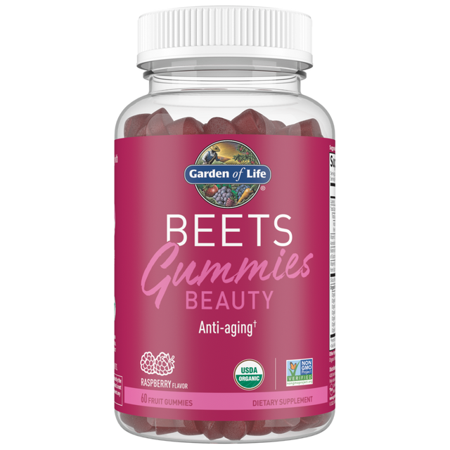 Beets—this little red root vegetable has so many impressive benefits. Beets are packed with essential vitamins, minerals, polyphenols and powerful antioxidants. If you’re interested in youthful looking skin, healthy hair and strong nails,† here’s a convenient, yummy gummy to add to your beauty routine—Beets Gummies Beauty! With an Organic Polyphenol Blend delivering 500mg of Organic Beet Root Concentrate, these anti-aging fruit gummies are not only packed with antioxidants to support youthful skin,† but they also contain 10mg of Organic Bamboo Silica, a clinically studied amount for healthy hair, skin and nails.† In addition to vitamins C and B12, we also added 2,500mcg of fermented Non-GMO Biotin for healthy hair and nails.† These delicious raspberry flavored gummies are Certified USDA Organic, Non-GMO Project Verified, NSF Certified Gluten Free and Certified Vegan.