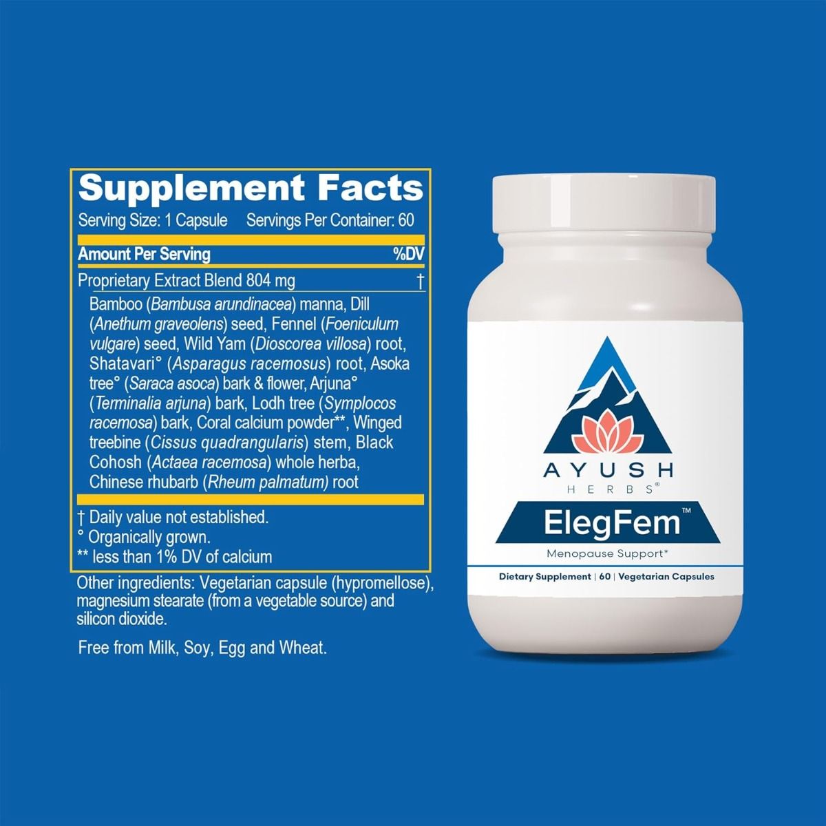 ElegFem™ menopause support is a doctor formulated Himalayan herbal blend that supports female health, and promotes balanced hormone and energy levels.*