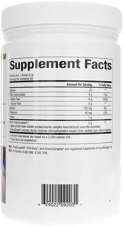 Clinical trials have shown that in addition to the benefits of glucose and lipid reduction,highly viscous fibers were found to lower insulin secretion and C-peptide in response to carbohydrate meals,and also improve glucose tolerance. Viscous fibers effectively reduce the glycemic index of foods consumed simultaneously,by preventing the postprandial spikes in blood glucose concentration.5,6 Fiber viscosity has also been associated with increased satiety and reduced appetite; in a randomized trial,PGX reduced hunger and prospective consumption when combined with a low calorie diet,and in an earlier trial enhanced weight loss and reduced percent body fat when used in concert with lifestyle changes.7,8 PGX Daily Granules allow for easy dosing,with 5 g of PGX per scoop,and are unflavored to allow mixing with a variety of beverages and foods.